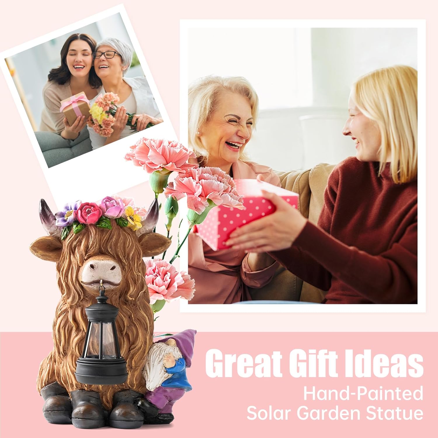 Garden Lantern Statues Resin Highland Cow with Gnome Outdoor Solar Light Decor Funny Decorations for Yard and Patio Gifts